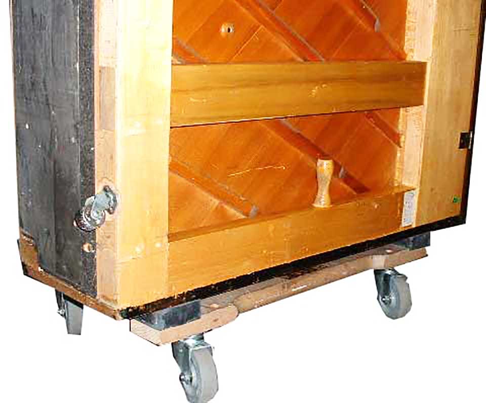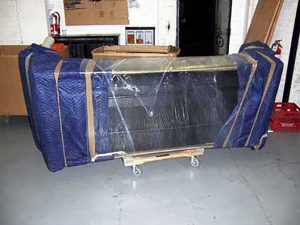 In order to properly utilize the dolly to transport large furniture like the piano below, you have to mount the piece correctly upon it. That means that the dolly must be centered under the furniture piece, like the piano on its side is in the picture below.