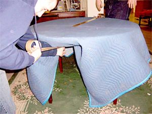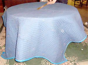 When padding the table top, lay a big pad (or two smaller pads) on it, draping the excess padding over the sides of the furiture.