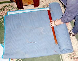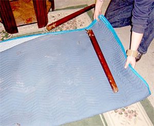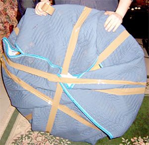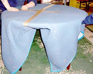 A properly wrapped small table can be easily carried on one shoulder and flipped it over to the other shoulder if the mover gets tired.