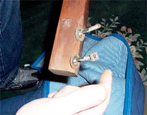 When the legs have been removed be sure to reattach the hardware to each one of them as shown in the above picture.