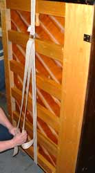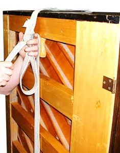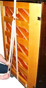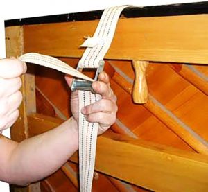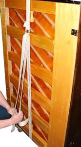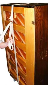 Here’s a photo sequence that shows the best way to strap an upright piano to a dolly – the proper and safe way to do it.